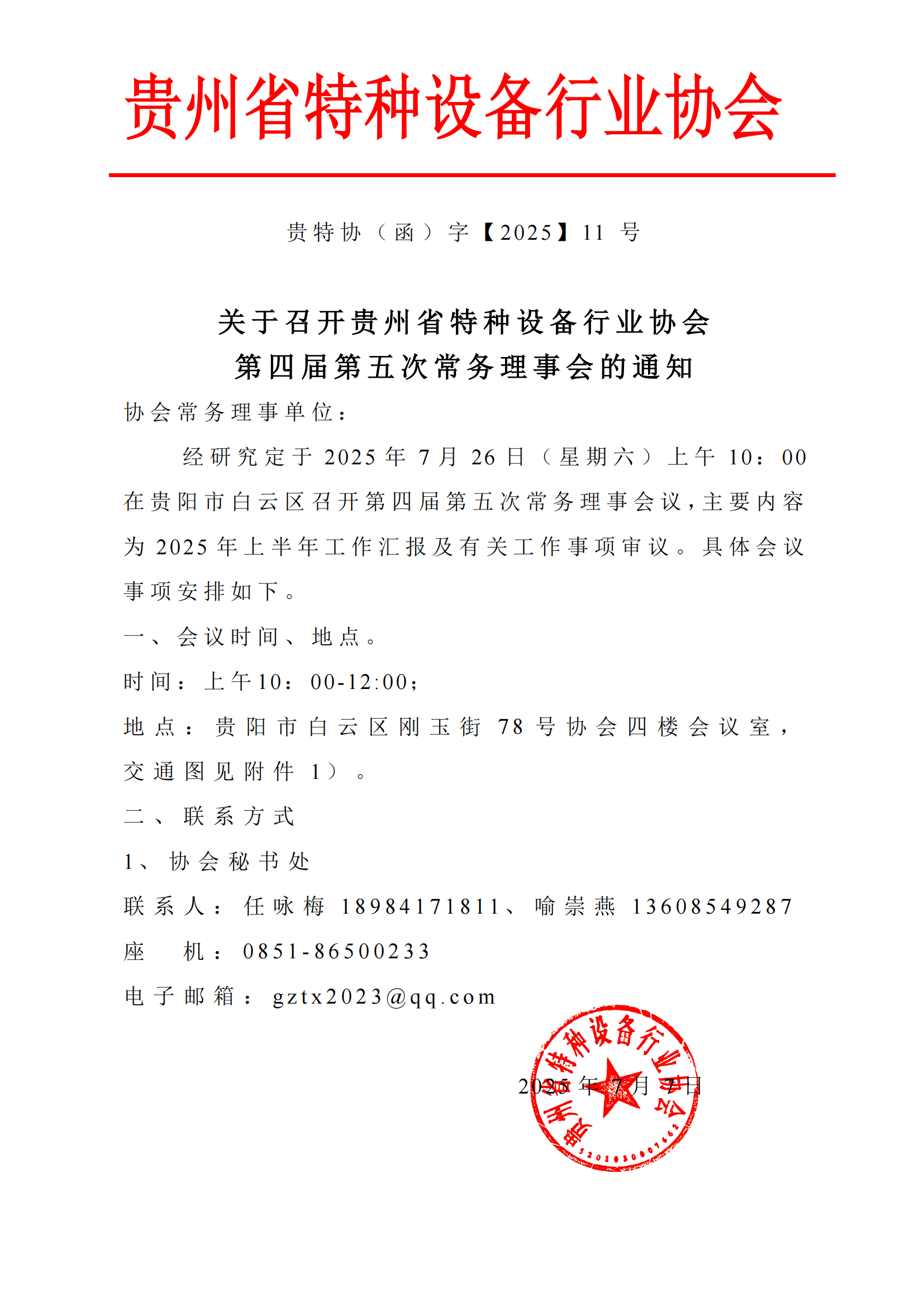 关 于 召 开 贵 州 省 特 种 设 备 行 业 协 会 第 四 届 第 五 次 常 务 理 事 会 的 通 知